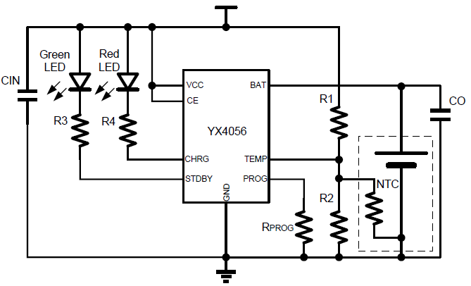 YX4056C的其它特點包括充電電流監控器、欠壓閉鎖、