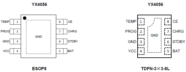 YX4056C采用綠色環保的ESOP8封裝以及最少3個外圍器件可有效減小電路PCB布板空間。