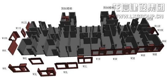 在100米以下公共建筑中采用預(yù)制裝配整體式框架剪力墻結(jié)構(gòu)體系,柱、梁、疊合板、樓梯、陽臺(tái)預(yù)制裝配,剪力墻現(xiàn)澆;適用市中心場(chǎng)地狹小、環(huán)保要求高、工期要求緊的項(xiàng)目。