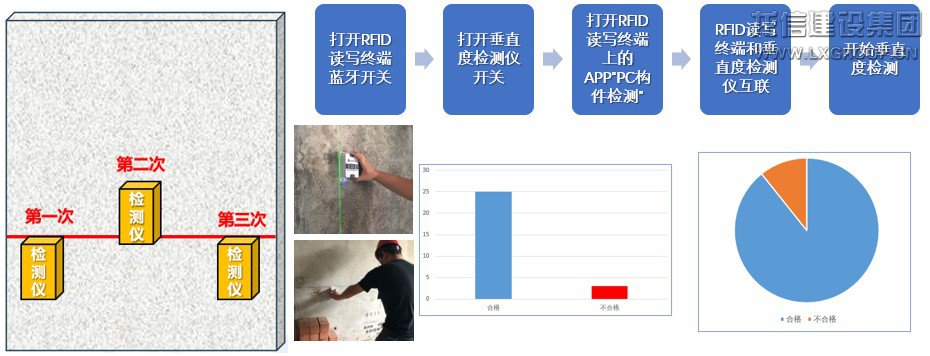 在南通雅居樂萬科·中央公園等項目中進行了試點應用。采用3D激光掃描儀,實現對預制構件結合面粗糙程度的檢測,采用智能垂直度檢測儀完成了豎向預制構件垂直度的檢測。
