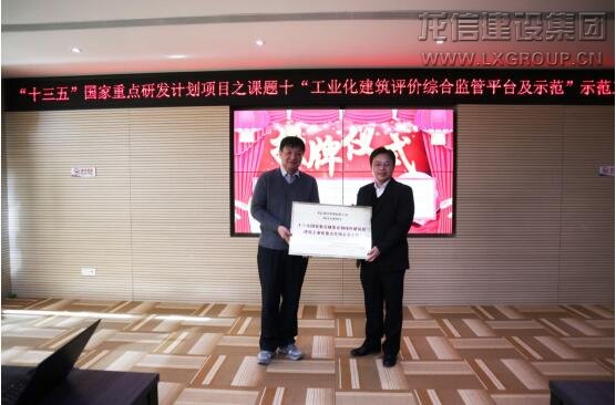 會議最后,由“工業化建筑檢測與評價關鍵技術”項目負責人,中國建筑科學研究院建筑工程檢測中心張仁瑜主任為龍信集團三個十三五國家重點研發計劃綠色建筑及建筑工業化重點專項示范工程進行授牌。