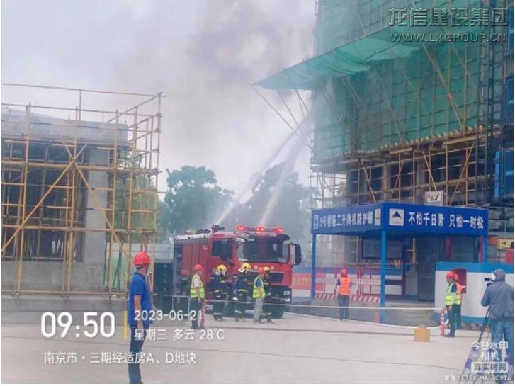 為保證演練的實戰(zhàn)性和可視性,本次演練采取了實戰(zhàn)演練的方式現(xiàn)場直播,模擬了南京生態(tài)科技島三期經濟適用住房A、D地塊項目施工現(xiàn)場因焊接作業(yè)未使用接火斗,點燃易燃材料發(fā)生火災事故。模擬事故發(fā)生后,項目部立即啟動應急救援預案,項目部組織應急救援組、安全保衛(wèi)組、醫(yī)療救護組、后勤保障組第一時間迅速趕到事故現(xiàn)場,拉起警戒線、有序疏散人員開展火災自救,并使用干粉滅火器及現(xiàn)場消防用水控制火勢。由于火勢較大,安全保衛(wèi)組隨即聯(lián)系119,119到達現(xiàn)場后在安全保衛(wèi)組的引導下進行救火,火情及時得到控制。整個演練過程分工明確、有條不紊,應急方案執(zhí)行有力、事故處置得當。