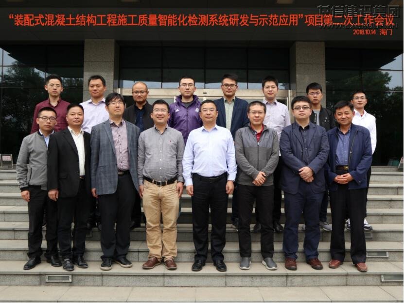 2018年10月14日,海門市2017年東洲英才計劃資助項目暨龍信集團2018年自籌基金科技項目“裝配式混凝土結構工程施工質量智能化檢測系統研發與示范應用”第二次工作會議在龍信集團技術中心召開。會議由技術中心主任程志軍主持,同濟大學陳雋教授、趙勇副教授、安泰得(上海)軟件科技有限公司總經理譚新宇、中國建筑科學研究院有限公司工程師張渤鈺、江蘇建筑職業技術學院建筑工程技術學院院長陳年和、龍信產業公司副總經理黃新等16名項目組成員出席了本次會議。