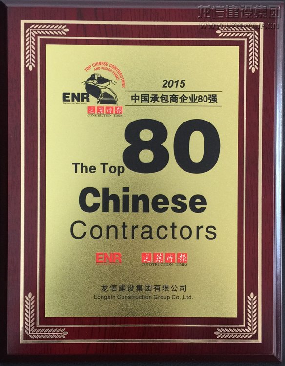 11月19日, 由美國《工程新聞記錄》(ENR)和中國《建筑時報》共同主辦的2015年“中國承包商80強”榜單在南京發(fā)布,龍信建設(shè)集團有限公司第7次入選該榜單,此次名列第32位。