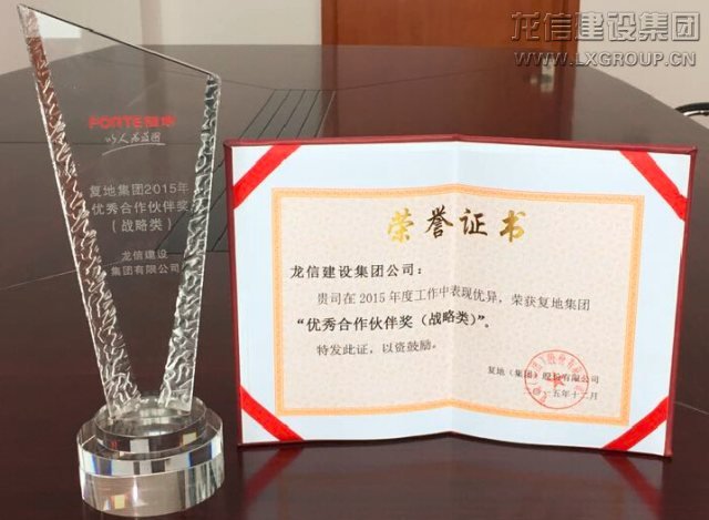 2015年12月7日,復地集團在上海浦東星河灣酒店舉行2015年復地集團合作商大會。龍信集團二分公司二部施建昌經(jīng)理應邀參加大會,并榮獲“優(yōu)秀合作伙伴獎(戰(zhàn)略類)”。