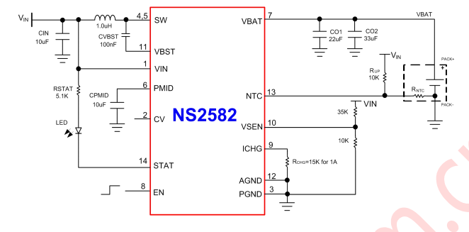 當(dāng)前位置:網(wǎng)站首頁> 產(chǎn)品中心 > 電池充電管理芯片 > 雙節(jié)鋰電池充電芯片 >NS2582輸入4V-5.5V同步升壓雙節(jié)鋰電池2A充電管理芯片IC